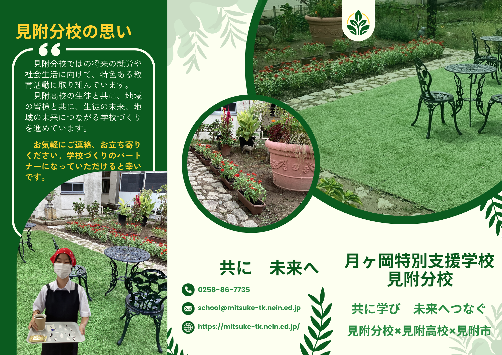 新潟県立月ヶ岡特別支援学校見附分校が令和5年4月に開校しました。 当校は、生徒の夢と希望をかなえるために一人一人の進路に対応したカリキュラムを設定します。また、県立見附高等学校の校舎内に設置されたことを生かし、同年代の高校生とも交流しながら学びを深めていくことができる新たな知的障害特別支援学校です。
