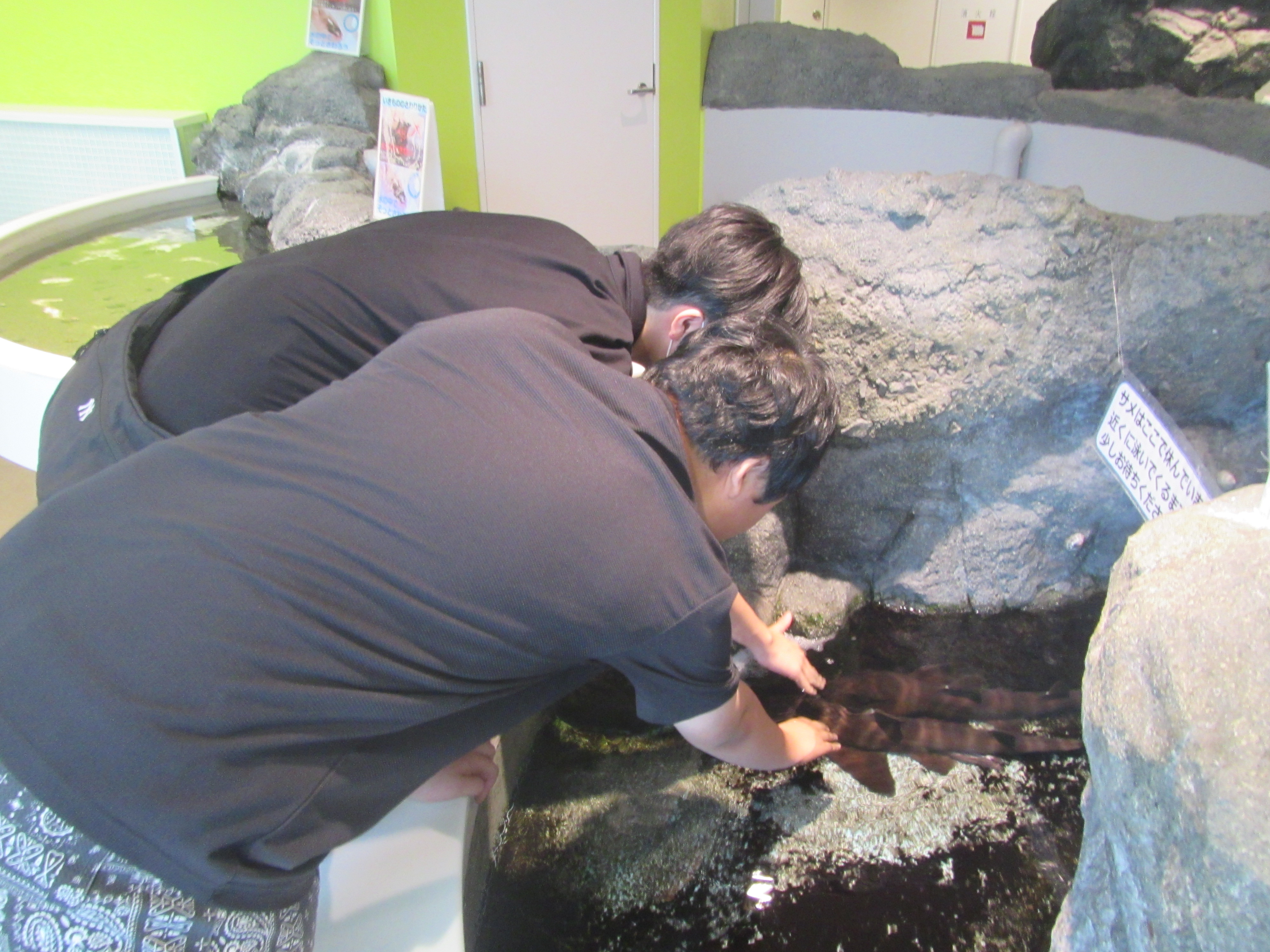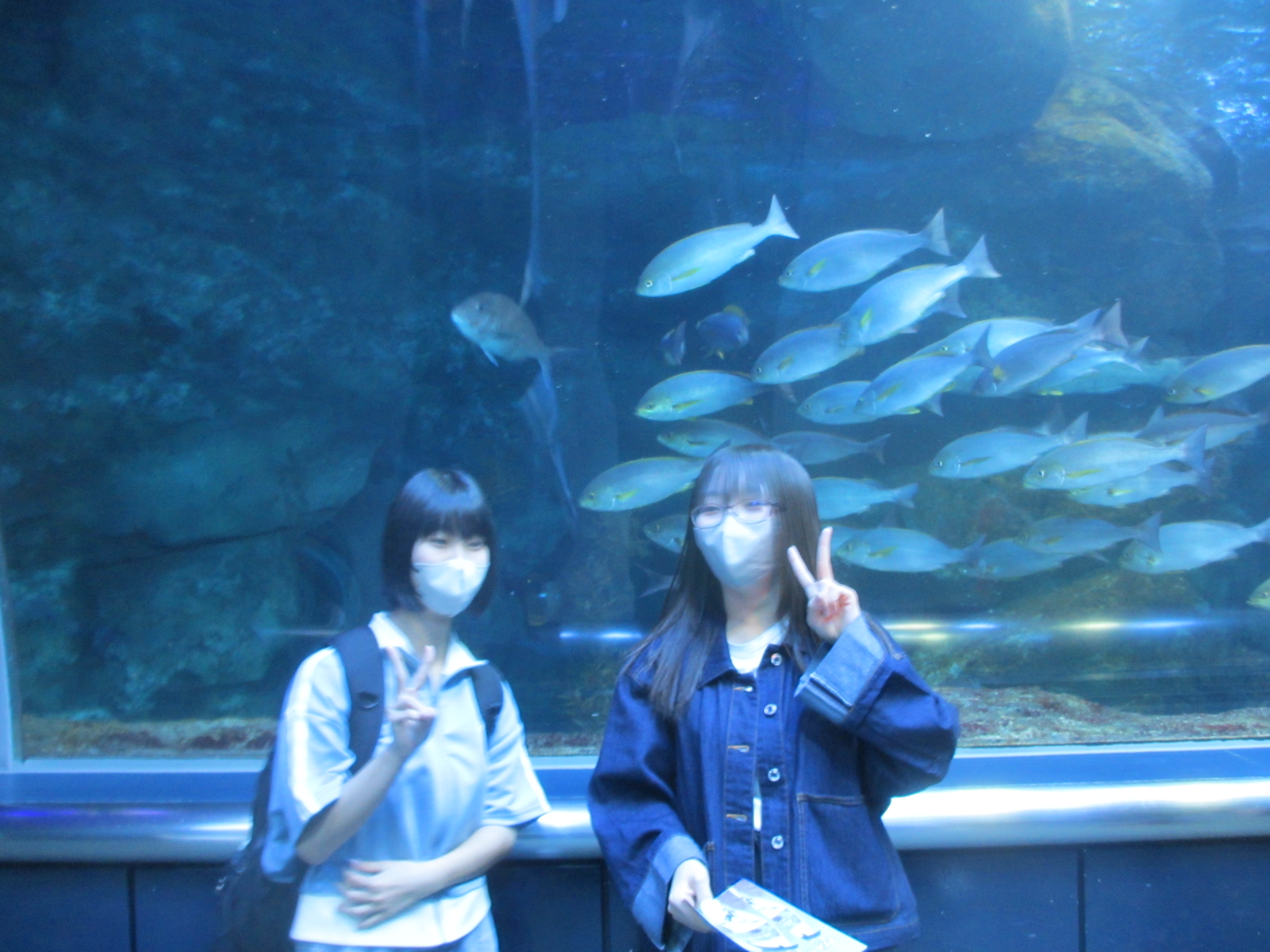 1年生校外学習in新潟 9月25日(木)1年生が新潟へ校外学習に出掛けました。11人全員がそろって、楽しく、たくさんの学びのある1日を過ごしました。 マリンピア日本海では、クラスごとに自分たちで立てた計画に沿って、見学や買い物を楽しみました。 タッチ水槽でドキドキしながらサメにタッチ。 イルカショーでは水しぶきのたくさんかかる最前列での観覧に挑戦する生徒も!! お昼ご飯はレストラン「UMINONE~海の音~」で、好きなものを食べました。 午後はCoCoLo新潟で、班別活動でした。流行りのお店でおいしい飲み物を飲んだり、買い物をしたり、どの班も時間いっぱいまでお店を回っていました。