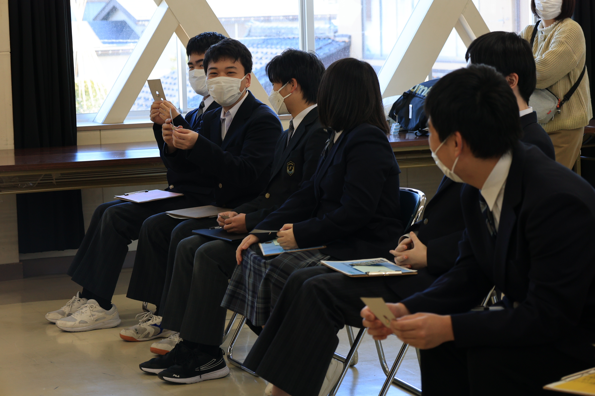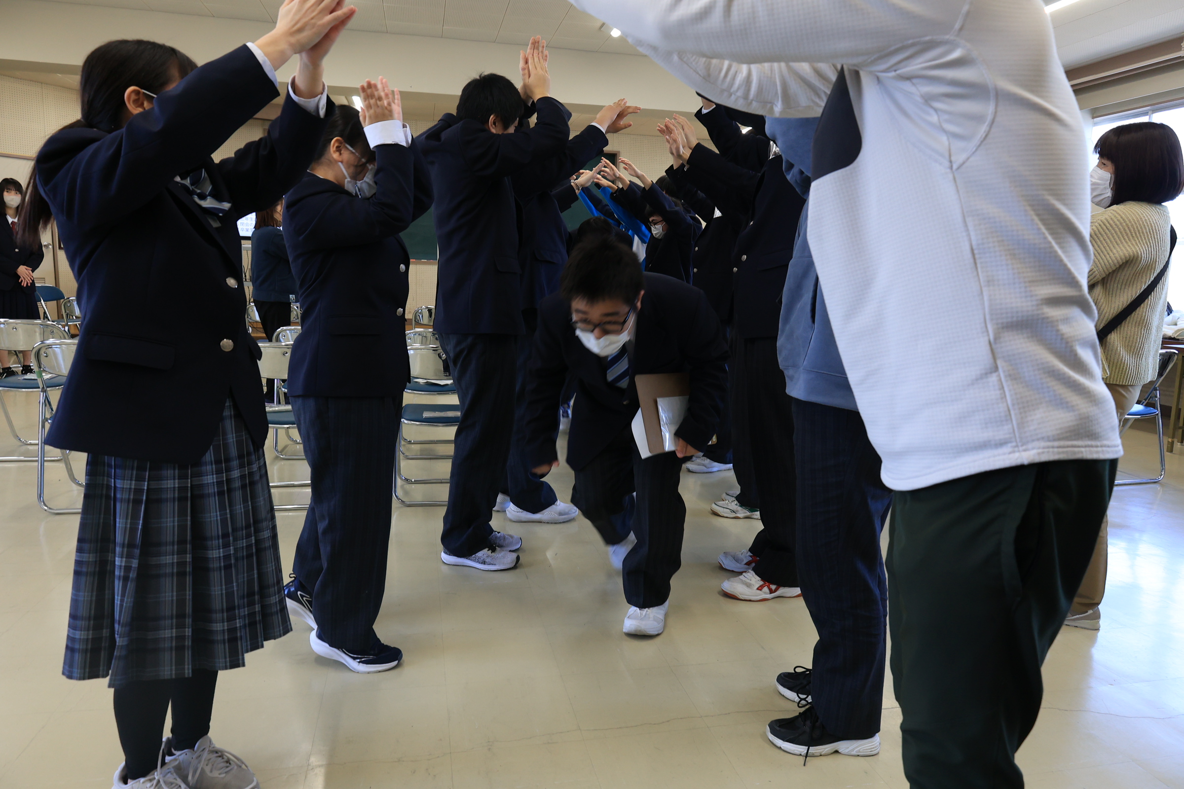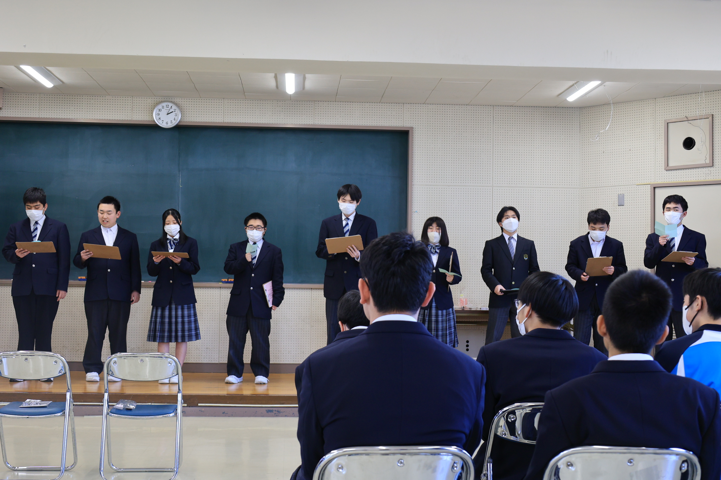 三年生を送る会 2月26日(木)1・2年生が心をこめて企画した「三年生を送る会」がありました。BINGO大会で盛り上がり、3年生からのメッセージでジーンとして、3年生からの「空も飛べるはず」の歌のプレゼントにウルウルしました。第1期生の3年生をみんなが頼りにしていました。